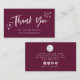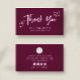 Modern and minimalist small business insert card featuring a hand lettered text that says "thank you" with doodle stars. You can add your logo and a simple message on the back along with your social media and website information. Cranberry background.