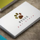 Una elegante tarjeta profesional con el nombre de su tienda mascota con el lema personalizado y la imagen de una pata de perro... y la dirección y palabras relacionadas en la parte de atrás...