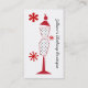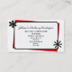 Una tarjeta de visita perfecta para una tienda de ropa o una boutique. La carta presenta un ilustracion de una forma de vestir roja que lleva un vestido blanco descalzo con puntos de polka negros. La forma de vestir está rodeada de estrellas decorativas. Personalice el texto en la parte frontal y posterior.