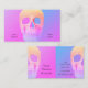Media calavera cara cercana azul gótico color púrpura amarillo fresco diseño creativo único. Tarjetas de visita profesionales de artistas de tatuaje. Personalice su información. Asustado, espeluznante, moderno y artístico estilo vintage. Derechos de imagen de Marg Seregelyi Photography.