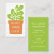 Haga publicidad y promueva de su tienda el cultivar un huerto y del jardín con esta plantilla de la tarjeta de visita de la diversión. El diseño muestra una planta potted linda. El personalizar con sus tiendas entra en contacto con fácilmente el Info y horas.