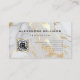 Tarjeta De Visita Tijera de código QR de mármol de oro blanco elegan