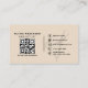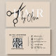 Una tarjeta de negocios de tono neutro de moda con un acento moderno, tipografía audaz y un escandaloso código QR para reservas instantáneas o medios sociales. Diseñado para los estilistas de cabello y los profesionales de la belleza que desean un aspecto limpio, atemporal y profesional con un sutil toque de lujo.