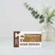 La cubierta incluye una capa de madera que incorpora una silueta de herramientas de mano de la escalera, el pincel de martillo y rodillos. En la parte superior está tu prestigioso nombre, cargo y los detalles de contacto con el nombre de negocio "HOME REPAIRS" cerca de la base. Al dorso, en una cubierta blanca, el logotipo de martillo que puedes usar está en la parte superior seguido de tu prestigioso nombre, detalles de contacto y una opción de subtítulo de eslogan para publicitar tus servicios. Una tarjeta creativa para el artesano, carpintería y negocios de construcción. #handyman #homerepaircontratista #building #building #building #contratista #remodeling #homerepair #interiordesign #homeImprovement #handymantools #zazzlemade