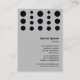 Una plantilla de tarjeta de visita con un atractivo diseño abstracto de estilo de edad espacial que consta de 5 columnas de siete planetas como puntos de tamaño creciente o decreciente. Nombre de la empresa y tipo de negocio en la parte delantera con Nombre y otros datos de contacto en la parte posterior con una variación del diseño frontal en el área superior. En esta versión el color del motivo se alterna en la parte delantera y trasera, lo que permite diferentes tonos oscuros o claros.