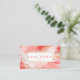 Tarjeta de presentación moderna y elegante para una amplia gama de negocios. El diseño cuenta con nuestro hermoso arte abstracto moderno de tinta acuarela rosa y roja con vetas doradas de mármol dorado falso. Las hojas de palma blancas decoran la esquina. Los tonos suaves de rosa afelpado, coral y rosa-rojo crean un look elegante y moderno. Personalice con el nombre de su empresa y monograma. El reverso presenta nuestro hermoso arte abstracto moderno de tinta acuarela rosa y roja creado en formas de arco con elementos de arco iris dorado. Arte original de Moodthology Papery