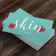 Cuidados de la piel Esteticista Elegante Flor y Papel Typografía Tarjetas de Negocio Verde azuladas.