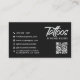 Tarjeta de negocios moderna, elegante y profesional de Tattoo Artist. La parte delantera de la tarjeta de visita incluye una disposición de media fotografía con el guión tipográfico "tattoos" en la moderna y moderna escritura a mano y tu nombre/nombre de negocio en un fondo gris oscuro. En el reverso se muestran los datos de contacto, el código qr y los detalles de los medios sociales. Se puede personalizar el tamaño del texto, el tipo de letra. Perfecto para tatuadores, tatuajes, estudio de tatuajes...
