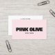 Moda, elegante tarjeta de presentación de fondo rosa con tipografía negra audaz. Para encontrar materiales de marketing coincidentes, por favor envíeme un correo electrónico a themarisuvalencia@gmail.com o envíeme un mensaje a través del chat de Zazzle. Diseño original de Marisu Valencia.