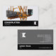 Una plantilla atractiva para tarjetas de visita diseñada teniendo en cuenta la industria de la construcción, pero que podría adaptarse a muchos otros usos. La imagen del área de pantalla puede cambiarse si es necesario, ya que la tira de pantalla inferior es un gráfico independiente. Los logotipos (frontal y posterior) utilizados en este ejemplo son un símbolo de una de las fuentes de imagen atractivas y útiles de Zazzle y pueden ser reemplazados por un símbolo diferente, o su propio logotipo.