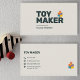 Una tarjeta de visita para un fabricante de juguetes o una tienda de juguetes. El diseño es limpio y minimalista, con el ilustracion de un bloque de juguetes de madera con una estrella en la parte superior. Podría ser utilizado por un artesano haciendo juguetes de madera, construcción o juegos educativos, etc.