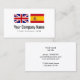 Plantilla inglesa española de la tarjeta de visita del traductor de los servicios de traducción. Diseño de tarjetas de encargo de la visita con Union Jack británico y el logotipo español de la compañía de la bandera. Tarjetas simples con la tipografía moderna para el nombre y el lema. Las tarjetas profesionales para los servicios de traducción, el profesor de lengua, la educación, la industria de viajes, los productos, la visa que manejaba servicios, los servicios del traductor, el derecho internacional, la agencia de viajes, el transporte, las importaciones/exportaciones, la lengua traduciendo a la compañía, los negocios comerciales, el freelancer etc. disponible en diversos tamaños, el grueso de papel y la esquina redonda cortaron forma. También disponible para otras idiomas. Bandera de España y de Inglaterra Reino Unido Gran Bretaña. Cargue sus propias banderas de país opcionalmente. Consiga ideas más creativas y la inspiración gratuita en nuestra tienda única.