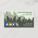 Cuatro carteles se sientan en la base de la tarjeta que muestra los modos de transporte de logística, la carga por el mar, la tierra, el aire y el carril. Una opción del lema está disponible arriba para que usted haga publicidad de sus servicios. Todo el esto contra un ajuste urbano creativo de la ciudad con las siluetas del edificio como cubierta del fondo. Su nombre y cargo se sientan en el top mientras que hacia el sur a esto, cerca de la base, son los detalles del contacto.