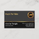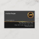 Una tarjeta profesional con una línea de demarcación de oro que separa la columna gris de la negra. En la esquina superior izquierda se encuentra la opción de servicio "camión de alquiler" que puede cambiar para adaptarse a su negocio. En la dirección opuesta está el camión dorado que se puede usar. En la columna negra, está tu prestigioso nombre y título de trabajo con los datos de contacto en el extremo derecho.