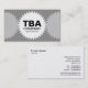 Una plantilla de tarjeta de visita con un diseño de tres engranajes o ruedas de cog. El engranaje central tiene espacio para las iniciales o el monograma, nombre de la empresa y tipo de negocio. Nombre y otros datos de contacto en el reverso dispuestos sobre un fondo plano. Este diseño también se puede personalizar más. En esta versión los cogs izquierdo y derecho son semi-transparentes así que aparecen como una versión más ligera del color de fondo, que se puede personalizar.