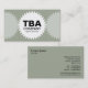 Una plantilla de tarjeta de visita con un diseño de tres engranajes o ruedas de cog. El engranaje central tiene espacio para las iniciales o el monograma, nombre de la empresa y tipo de negocio. Nombre y otros datos de contacto en el reverso dispuestos sobre un fondo plano. Este diseño también se puede personalizar más. En esta versión los cogs izquierdo y derecho son semi-transparentes así que aparecen como una versión más ligera del color de fondo, que se puede personalizar.