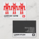 Una atractiva plantilla de tarjetas de visita moderna con tres robots rojos. Adecuado para una variedad de negocios. Nombre de la empresa en la parte delantera con nombre y datos de contacto en la parte inversa. N.B. La decoración del logotipo del rectángulo proviene de una de las fuentes de imagen de Zazzle y puede conservarse para su decoración o sustituirse si se prefiere.