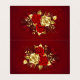 La composición de dos rosas rojas pintadas artistalmente y un rosa dorado, decorado con oro, hojas de joyas sobre fondo texturado.