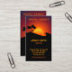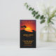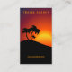 Servicios genéricos de la agencia de viajes/del turismo/plantilla de la tarjeta de visita del operador turístico en negro y el naranja, con el ilustracion de la puesta del sol tropical, del mar y de las palmeras de la isla.