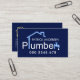 Una cubierta azul oscuro presenta un diseño creativo de tuberías domésticas "Plumber". En la parte superior está tu prestigioso nombre con los datos de contacto en la base de la tarjeta. Al dorso, los detalles de la tarjeta se encuentran a la izquierda con un logotipo dorado "home plumber" que puede usar. A esto le sigue su prestigioso nombre, los datos de contacto y una opción de slogan para publicitar sus servicios. Una tarjeta creativa y profesional para uso de los fontaneros.