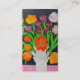 La pintura al óleo original del artista fino, Susan Payne-Trutna de los tulipanes del loro en un Tulipiere en un mantel rosado del control está disponible ahora como tarjeta de visita.