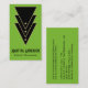 Un elegante diseño Art Déco moderno con un trío de triángulos negros bordeados de oro. Mostrado aquí con un fondo verde, puede cambiar el color de fondo a cualquier color seleccionando el botón "Personalizar". Este diseño de tarjetas de visita funciona bien para una variedad de profesiones. Introduzca sus detalles reemplazando el texto de ejemplo que se muestra en la plantilla de diseño. Puede omitir o añadir cualquier información que desee, cambiar fuentes, mover texto, etc.