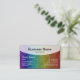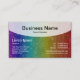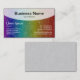 Una plantilla de tarjeta de visita con un área de encabezado semitransparente curvada para el nombre de la empresa y el tipo de negocio, etc, con el nombre, el título del trabajo y otros detalles de contacto en la sección siguiente. El lado inverso de la tarjeta se ha dejado en blanco aunque el color base se deriva utilizando una imagen blanca semitransparente para que coincida con el encabezado semitransparente del frente. Esto puede dejarse en blanco, lo que resulta útil para escribir notas o puede personalizarse y/o utilizarse para texto/gráficos adicionales. Esta versión también tiene una superposición de textura blanca semitransparente tanto en la parte delantera como en la trasera y una imagen arco iris semitransparente en la parte delantera que crea la variación de color arcoiris oscuro.