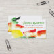 Las verduras cortadas estilo de la acuarela con el limón y las hierbas en esta tarjeta de visita colorida para un cocinero del vegano, una compañía de abastecimiento, una producción o granjeros comercializan al vendedor y la otra comida, cocinar, o negocio culinario.