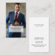 La parte delantera de la tarjeta de visita incluye un diseño vertical de fotos con una simple placa con marcos blancos que incluye el nombre de la empresa. En el reverso se muestra la información de contacto y el nombre de la empresa en un diseño limpio y minimalista. Puede personalizar el tamaño del texto, el tipo de letra, los colores y el color de fondo para adaptarlo a sus preferencias personales.