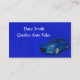 Tarjeta de visita de dos caras muy elegante con una gran imagen descolorida del coche en segundo plano y una sombra realista bajo el coche en primer plano Gran tarjeta de visita para gente de venta de coches nuevos y usados y centros de servicio de automóviles.