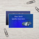 Tarjeta de visita de dos caras muy elegante con una gran imagen descolorida del coche en segundo plano y una sombra realista bajo el coche en primer plano Gran tarjeta de visita para gente de venta de coches nuevos y usados y centros de servicio de automóviles.