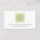 Esta moderna tarjeta de visita cuenta con un diseño minimalista de fondo verde de resorte luminoso con un estilo elegante negro que puede ser completamente personalizado, frontal y posterior. Se configura para una oficina o empresa basada en el hogar, aunque todo el texto se puede personalizar según sus necesidades. Póngase en contacto con el diseñador para obtener ayuda sobre el diseño.