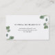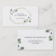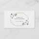 Estas minimalistas y modernas tarjetas de visita cuentan con hojas de eucaliptos de color verde, hojas de color verde y follaje sobre un marco central geométrico de color oro falso y un fondo blanco limpio.
