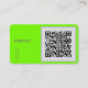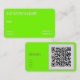 Plantilla de tarjeta de visita con fondo brillante, verde fluorescente, color sólido, código QR y letras a mano estilo fuentes grises claras. Diseño sencillo y moderno de Alma Wad. Personalice ambos lados ahora - cambie la imagen de portada a su propio código. Viene 100 en un paquete .