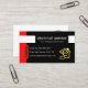 Overleaf, in a white cover, card details are on the right with the the gold logo at the top followed by the business name and its contact details.