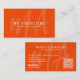 Audaz diseño de tarjetas de visita personalizado naranja con una estética moderna y energética que presenta un superpuesto inicial semitransparente de estilo monograma para un mayor impacto de marca. La disposición frontal ofrece espacio para un nombre de negocio de personalizable y una descripción del servicio, mientras que la parte posterior incluye campos claramente organizados para nombre, título, dirección, detalles de contacto, sitio web, correo electrónico, iconos de medios sociales y un código QR escaneado. Perfecto para profesionales de todas las industrias, esta llamativa plantilla ofrece una potente primera impresión con un diseño contemporáneo y seguro que combina colores vivos con tipografía limpia y legible.