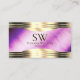 Tarjeta De Visita Vibrante Morple Marble Gold Borders Monograma Foto