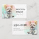 Esta llamativa tarjeta de visita incluye un alegre cachorro con un colorido fondo de color pastel de color acuático, creando un diseño amigable y accesible. Perfecto para promocionar sus servicios, combina encanto y profesionalidad para dejar una impresión duradera en los clientes. ¡Una forma deliciosa de mostrar tu dedicación al cuidado de las mascotas!