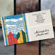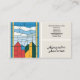 Tarjetas de visita con el ilustracion de mano de una vidriera con un cielo azul, nubes blancas, edificios rojos, verdes y amarillos: perfecto para un artista de vidrio teñido, pero también diseño interior, florista, artista, planificador de bodas, etc.