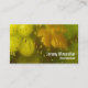 Una plantilla de la tarjeta de visita con una foto de los manojos de uvas de vino verdes y una vid hojean con un tinte anaranjado sobrepuesto con un vidrio rendido de vino blanco teñido. La plantilla se presenta para los viñedos o los lagares pero se adaptaría a cualquier negocio de la fruta o del vino. El texto está en negro y fácilmente cambiable a sus propios detalles del nombre y dirección. Usted puede también tener gusto de cambiar la foto.