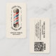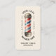 Revitalice su marca con nuestras antiguas tarjetas de visita de barbería. Con una acuarela retro pintada de púa de barbero en rojo icónico, blanco y azul, estas tarjetas ostentan una configuración de texto única en una formación de doble arco que rodea el poste. La tipografía retro clásica le da un toque de encanto atemporal a su marca. Guay, moderno y totalmente único, estas tarjetas son perfectas para barberos y estilistas que buscan hacer una declaración. ¡Pida ahora y eleve la imagen de tu peluquería con un toque de encanto vintage!