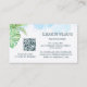 Professional business card featuring a painted turtle and watercolor green tropical leave.With a template for your QR code and your socials on the back. Perfect for vacation rental property managers, interior designers, home staging, horticulturists, travel agents, beach front realtors, landscape designer, fashion boutiques, beach boutiques, travel agents or any island based business.