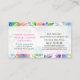 This business card features a watercolor style border of abstract flowers, spirals, circles, and flowing lines. The color palette combines soft pink, blue, yellow, mint green, and purple to create a warm, organic aesthetic. The design feels approachable and imaginative, making it an excellent choice for professionals who work with children or use creative modalities.