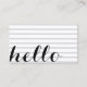Tarjeta De Visita White grey simple elegant minimalist "hello" card