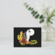Un lobo aullando en una luna llena con hojas de otoño y bellotas en el fondo de negro