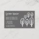 Una tarjeta de visita moderna con un atractivo y original motivo de bosque. Adecuado para una variedad de negocios. Listo para ser personalizado. Los detalles de la empresa están en la parte delantera con el nombre y los datos de contacto en el reverso, en un fondo gris medio. Sin embargo, los colores de fondo son personalizables.