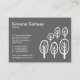 Una tarjeta de visita moderna con un atractivo y original motivo de bosque. Adecuado para una variedad de negocios. Listo para ser personalizado. Los detalles de la empresa están en la parte delantera con el nombre y los datos de contacto en el reverso, en un fondo gris medio. Sin embargo, los colores de fondo son personalizables.