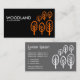 Una tarjeta de visita moderna con un atractivo y original motivo de bosque. Adecuado para una variedad de negocios. Listo para ser personalizado. Los detalles de la empresa están en la parte delantera con el nombre y los datos de contacto en el reverso, en un fondo gris medio. Sin embargo, los colores de fondo son personalizables. NB El gráfico del árbol en la parte posterior está en blanco.