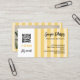 Striped yellow business card for any profession with your social media information in the form of your personal QR code and, on the back, a photo, also against a striped background. Your name is printed in a brush script against the monochrome yellow stripes. Add a photo on the back of yourself, the service your offer, or the goods you make and/or sell.