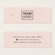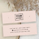 Tarjeta de presentación de producto pequeña con personalizado central y iconos de medios sociales. Color rosa claro o personalizado. Se pueden ajustar las guías de asignación agregando y eliminando espacios en el campo de plantilla y moviendo todo el elemento en la herramienta de diseño.